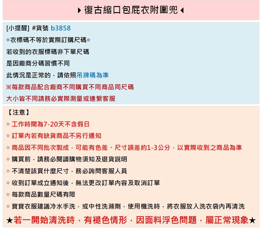 復古縮口包屁衣附圍兜