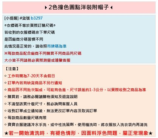 2色撞色圓點洋裝附帽子