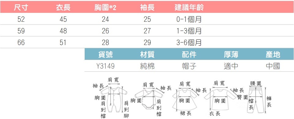 3款新生兒純白小貼布連身衣 CH01
