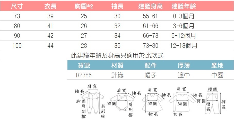 針織繡花長袖包屁衣附帽子 HDF01